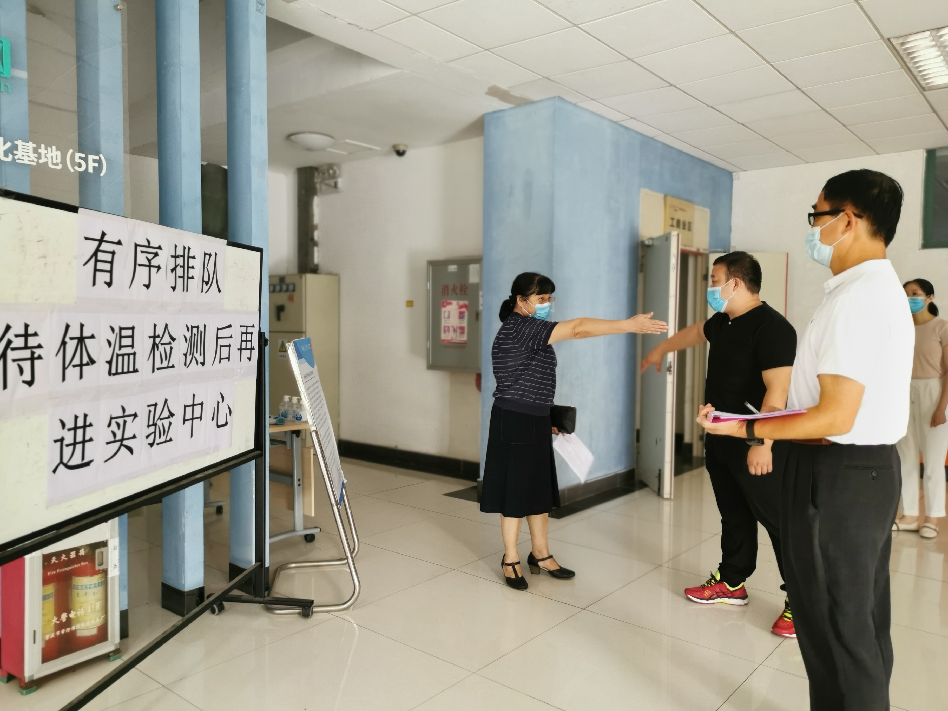 检查过程中,林颖详细询问各实验中心开课期间实验室使用、人员管控、实验室安全管理等情况,并对各实验中心的准备工作作出了肯定,同时也要求对进出实验室的人员要加强管理,“必须把安全放在第一位,只要有一个学生在,就必须有老师在。特殊时期更需要对每一方面加强管理,防范疫情的同时确保日常安全做到位。”