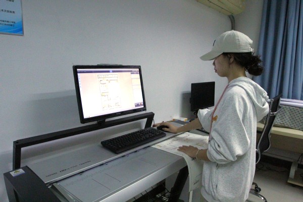 图纸档案室成立于2012年,使用面积为47.56平方米,主要用于各类教学文件、资料及学生设计类优秀作业存档。该实验室配有大幅面扫描仪、绘图仪、戴尔服务器等设备约11台(套),可对学生手绘设计类作业、优秀作业原图等进行扫描存档。