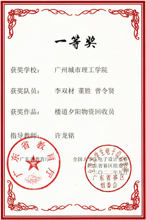 近三年获全国大学生电子设计竞赛获省赛三项;大唐杯“全国大学生新一代信息通信技术大赛国赛奖3项、省奖67项;华为ICT大赛广东省实践赛5项;RoboCom机器人开发者大赛国奖2项、省奖6项;中国机器人及人工智能大赛国奖1项,省奖3项等。