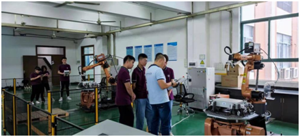 焊接机器人工作站实训采用工业级机器人焊接自动化技术实训装备,可满足焊接加工工艺及设备设计、焊接结构制造工艺实施、焊接夹具设计、焊接质量检测与分析、焊接设备制造、焊接设备运行操作、焊接车间生产技术管理、经营销售与售后服务等实训内容,为高素质技能型人才培养提供了实训平台。项目配套了机器人示教编程仿真软件,使得学生在实训过程中能进一步深入全面的了解自动化焊接技术。