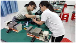 特种加工训练模块区别于传统机械加工,所采用的加工方法及原理比较特殊。中心所含特种加工训练模块主要有电火花和线切割。电加工(电火花、线切割)技术是特种加工的形式之一,其原理是将电能、热能与机械能组合直接施加到被加工的部位上,从而实现改变产品结构形状的加工方法;实习中学生在电火花机床上用简单的工具电极加工复杂的三维曲面零件形状,在线切割机床上按照电脑编程的轨迹进行放电来切割形状复杂的零件,掌握基本的特种加工应用技术手段和技术,构建适应先进制造技术发展的工程能力。