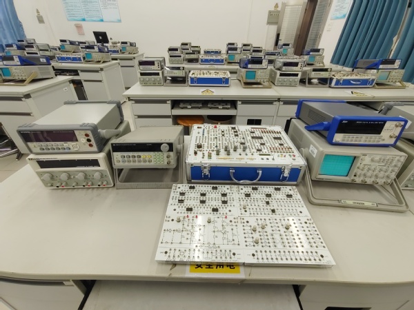 本实验室位于B2-302,占地面积约114m2,是学生学习电工电子基础实验的实验室,能同时容纳56名学生进行实验操作。主要面向电气、汽车、机械/机器人、电信/通信、计算机等学院的学生,通过开设的实验项目,使学生掌握各种电子仪器的使用方法;能按电路图接线和查线;进行实验数据的测量及整理;掌握模拟电路、数字电路的基础知识和分析方法;重点训练学生的实验技能,树立工程观点和严谨的科学作风。