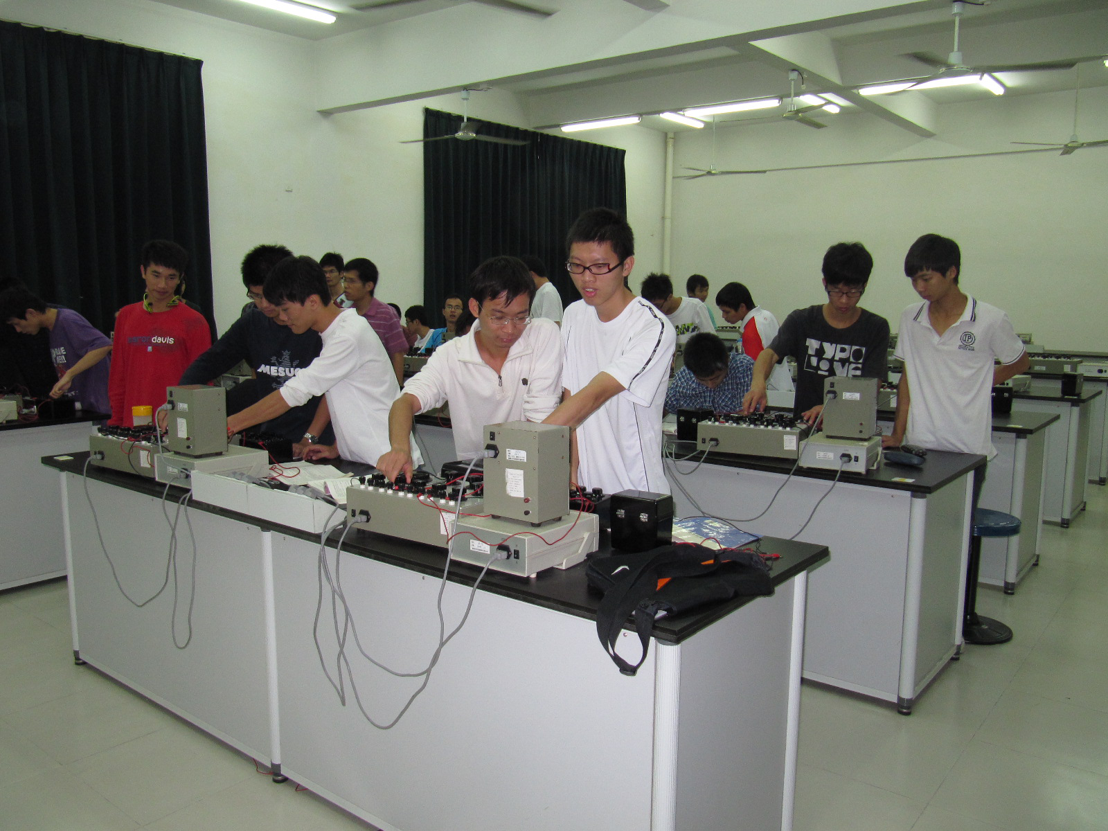 物理教学实验中心的实验用房面积约1520平方米,物理教学实验中心开设有16个大学物理实验项目,5个大学物理创新实验项目,3个工程热力学实验项目,以及40个大学物理演示实验项目,用于基础教学实验仪器设备约512台套,用于创新设计实验仪器设备35台套,用于工程热力学实验仪器设备12台套,实验仪器设备资产约460万元。物理教学实验中心目前有16名专职教师,其中教授1名,副教授3名、讲师10名、实验师2名。