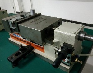 气动夹具将电气元件应用和机械零件夹具装调修配操作相结合,主要由电磁阀及其控制手柄、V型夹具和检验工件组成,每个气动平口钳上安装了2个调试夹具,便于学生掌握夹具零部件的加工工艺、精度测量以及夹具装夹装调等知识。