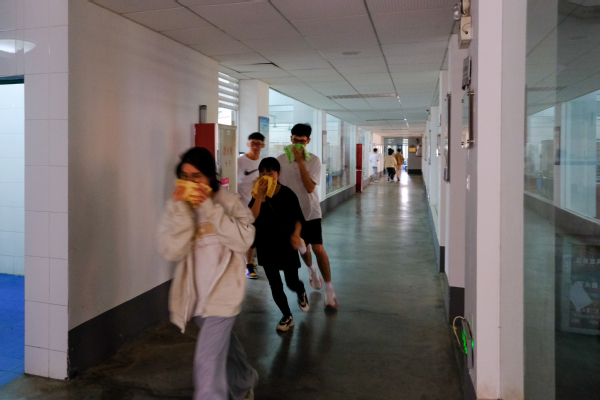 应急疏散演练开始前,由汽车与交通工程学院实验中心教师柯志鹏向学生讲解B7、B8栋实验楼安全疏散通道分布和紧急疏散路线,并强调了本次应急疏散演练的基本流程、演练要求、“逃生”动作要领等,确保本次演练能够安全、有序地进行。演练场景为学生在实验楼内上课时突然响起消防警报,教师迅速组织学生使用湿毛巾捂住口鼻、按照消防疏散动作要领,从楼内安全通道迅速、有序疏散至楼外安全区域。