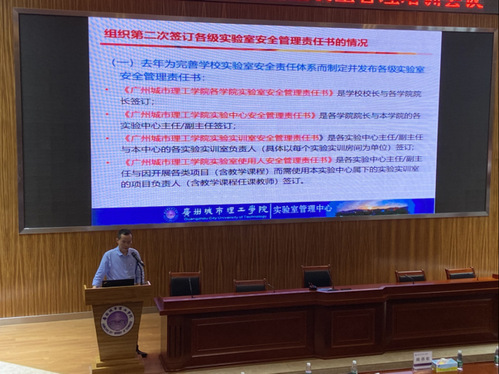 在培训会议上,保卫处办公室郑伟科长在实验室安全管理难点、消防安全、校园治安安全三个方面展开讲解,为大家带来校园安全方面的培训,重点强调实验室消防安全管理的责任落实及措施,日常消防管理的要求。