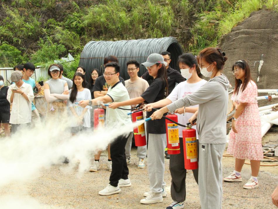 最后,黄永康给现场师生详细地讲解了灭火器的使用和注意事项,并组织师生现场进行灭火器的实操练习,进一步提高了师生对消防器材的实操能力。