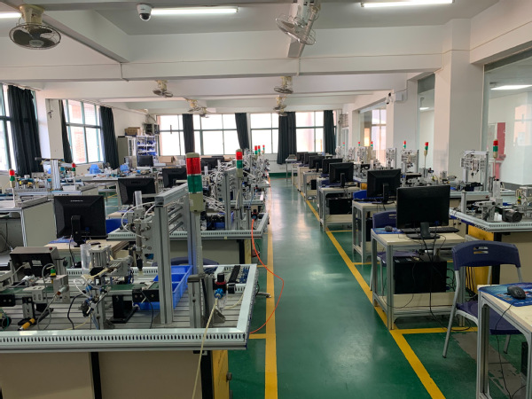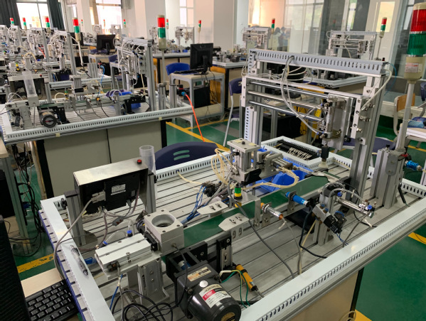 机电一体化实训室的房间为B8-311、307室,功能主要为实训教学,面积分别为168.24与27.52㎡。承担的实验课程包括工业自动化技术强化训练I、工业自动化技术强化训练II 等,开展实训项目包括气动技术、电路基础、传感器技术、变频器技术、PLC应用、触摸屏应用和通讯等。