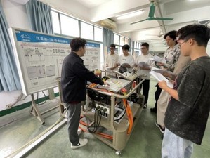 新能源汽车实验室,成立于2017 年,实验室建筑面积约185 平方米。实验设备固定资产近133 万元,仪器设备25台,主要承担新能源汽车整车控制、动力电池管理系统、新能汽车动力电池实验等方面的实验教学工作。配有比亚迪E5 动力电池和管理系统实训台、比亚迪E5驱动传动系统、比亚迪E5电动转向助力EPS实训台、比亚迪汽车故障诊断系统、新能源电驱动传动系统虚拟检车与展示软件、示波器等实验教学设备。