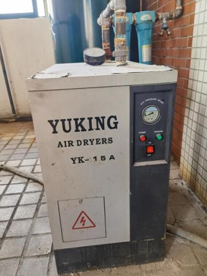一、空气压缩机。如图一,是核心设备,通过机械运动将大气中的空气压缩成高压气体。常见的有活塞式、螺杆式、离心式等类型,不同类型的空压机具有不同的性能特点和适用范围。工程训练中心是采用螺杆式空压机,设备结构简单、运行平稳、噪音低、效率高等优点。