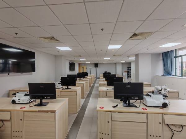 人工智能专业实验室总建成面积为116m2。主要承担人工智能专业的《ROS机器⼈程序设计》,《语音识别》,《自然语言处理》,《人工智能创新开发实践》,《图像处理与机器视觉》等课程实验。主要设备有人工智能实验箱20套、ROS小车10台、鸿蒙机器人15套、人工智能服务器集群等。主要实验项目有ROS地图导航和自主避障、ROS机械臂物资识别抓取分类、六轴机器人的控制实验和聊天机器人实验等,实验室教学特色与成果近三年获得RoboCom机器人开发者大赛国奖2项、省奖6项。中国机器人及人工智能大赛国奖1项,省奖3项。