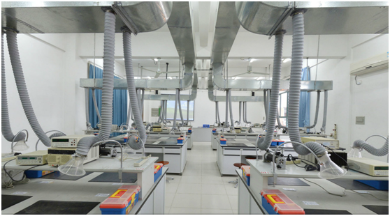 本实验室位于B2-402,占地面积约172m2,是供学生焊接练习、电子产品组装调试操作的实验室,能同时容纳80名学生进行实验操作。配备的仪器设备主要有直流稳压电源、示波器、万用表、交流毫伏表、实习工具箱等。为了改善实习室的空气环境卫生,还专门配备了抽风系统。主要承担《电子工艺实习A》课程实践,可完成焊接练习、元器件检测、电路板焊接、调试、测量等等环节,使学生掌握手工电烙铁焊接技术与拆焊技术、元器件检测与识别、电路各种电路的设计方法,能按电路图接线和查线,进行实验数据的测量及整理,重点培养学生的动手能力,为学习后续课程及从事科学研究工作打下一定的基础。